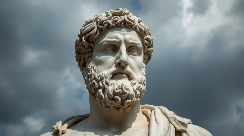 Marc Aurèle, souvent présenté comme l’emblème du stoïcisme appliqué, n’a pas eu une existence confortable. Son règne fut marqué par des guerres répétées et des épidémies meurtrières. Pourtant, ses écrits montrent une constance dans l’acceptation des événements. Il rappelle que les crises appartiennent à l’ordre du monde et que son devoir est de répondre avec justice, courage et modération.